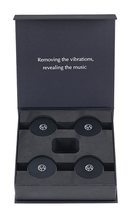 ผมได้รับผลิตภัณฑ์ควบคุมการสั่นสะเทือน ประเภทขาตั้ง (Feet) หรือฐานรอง (Isolator) สำหรับวางใต้เครื่องเล่นแผ่นเสียง, เครื่องเล่นซีดี, แอมปลิฟายเออร์, ลำโพง หรืออุปกรณ์อื่นๆ รุ่นที่ได้รับมาคือ StackAudio AUVA EQ ใช้หลักการคอนโทรล “ความสมดุลของพลังงานสั่นสะเทือน” เพื่อปรับปรุงคุณภาพเสียงแบบละเอียดจริงจัง