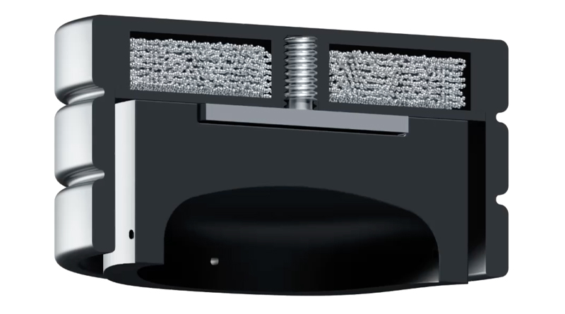 ในขณะที่ CSA ที่เป็นลักษณะยางซิลิโคนส่วนล่าง ที่มีแชมเบอร์ จะจัดการพลังงานสั่นสะเทือนที่ส่งผลมาจจากพื้นผิวด้านล่าง ด้วยการแยกออกด้วยการดูดซับแรงไม่ให้ส่งผลย้อนขึ้นไปยังตัวเครื่อง